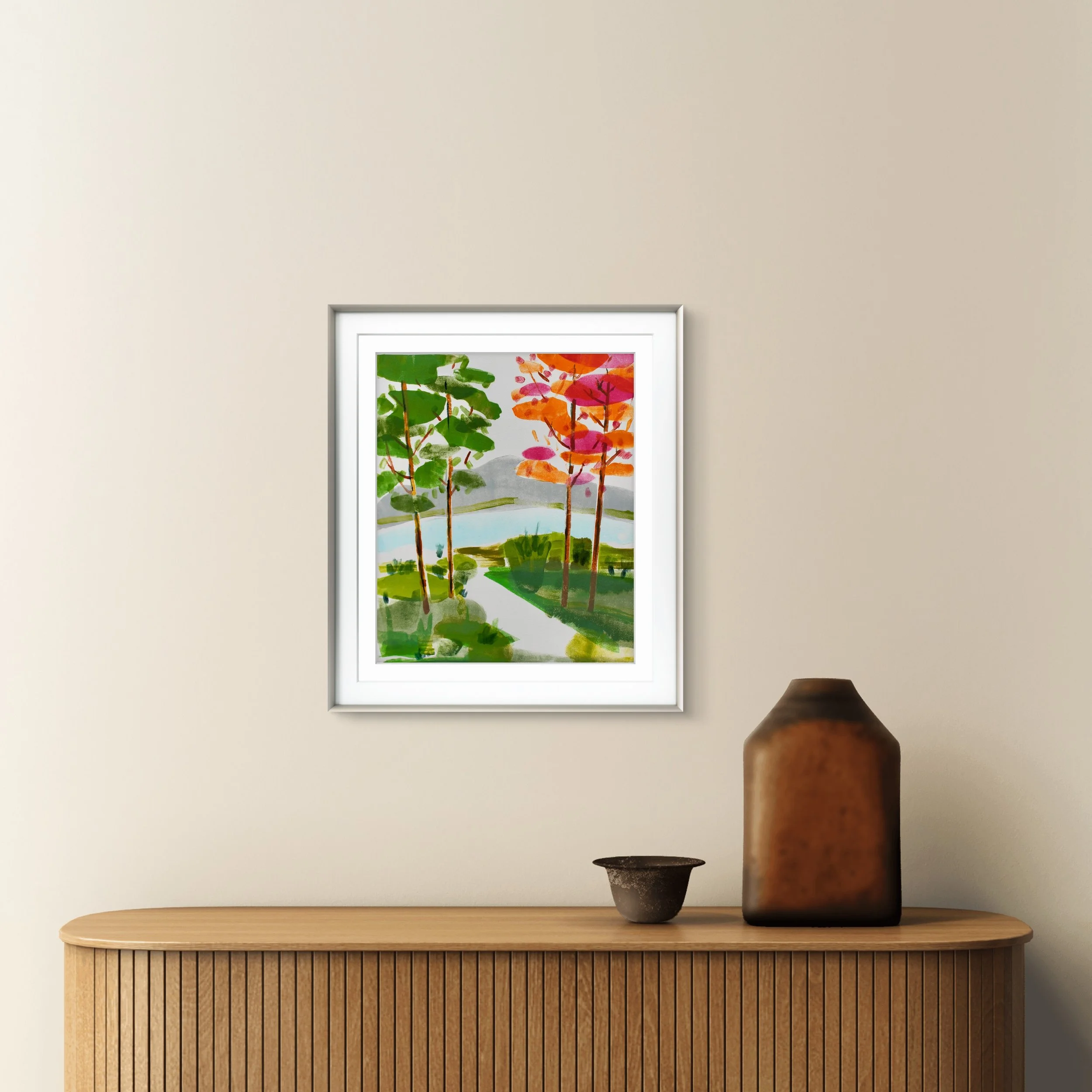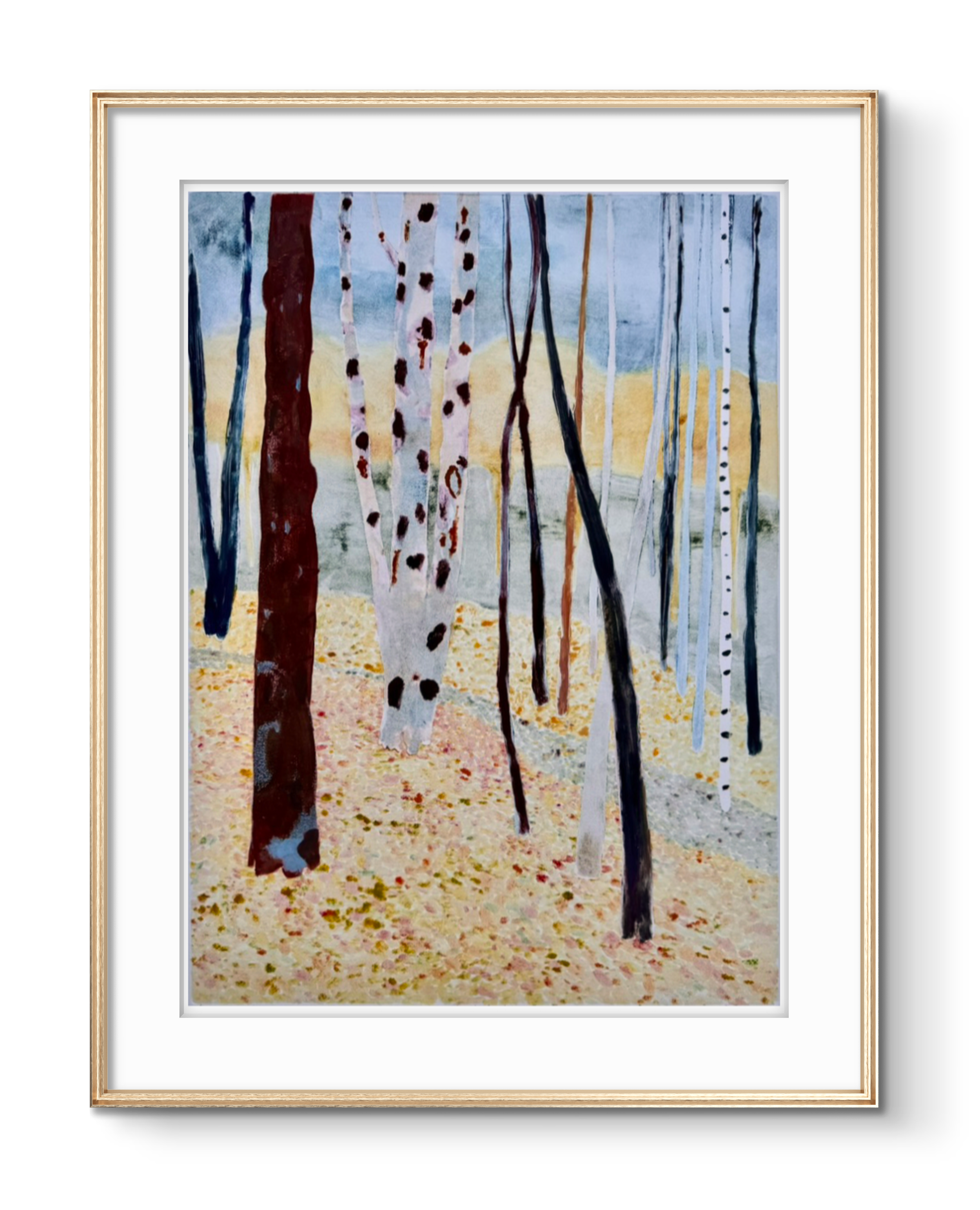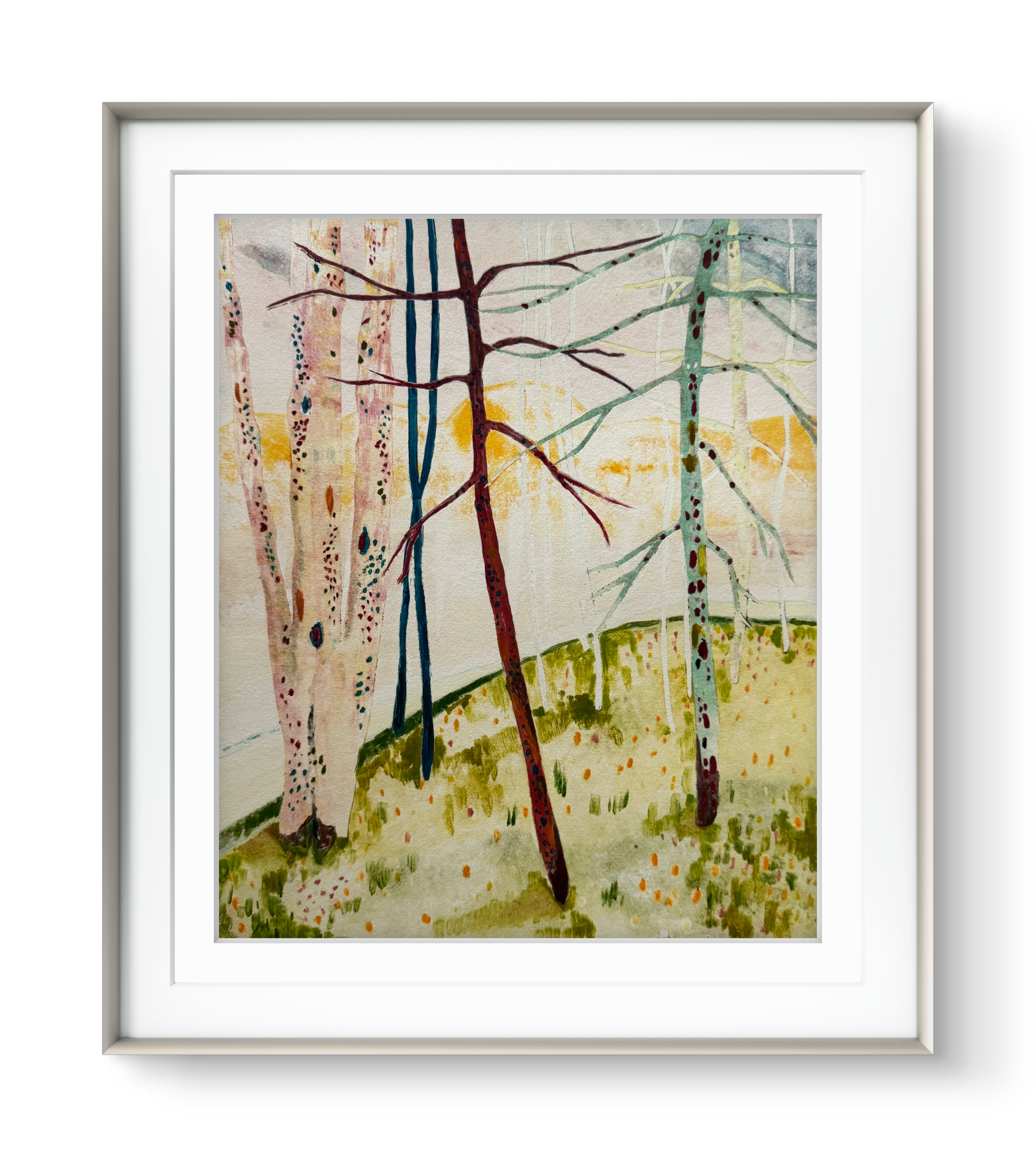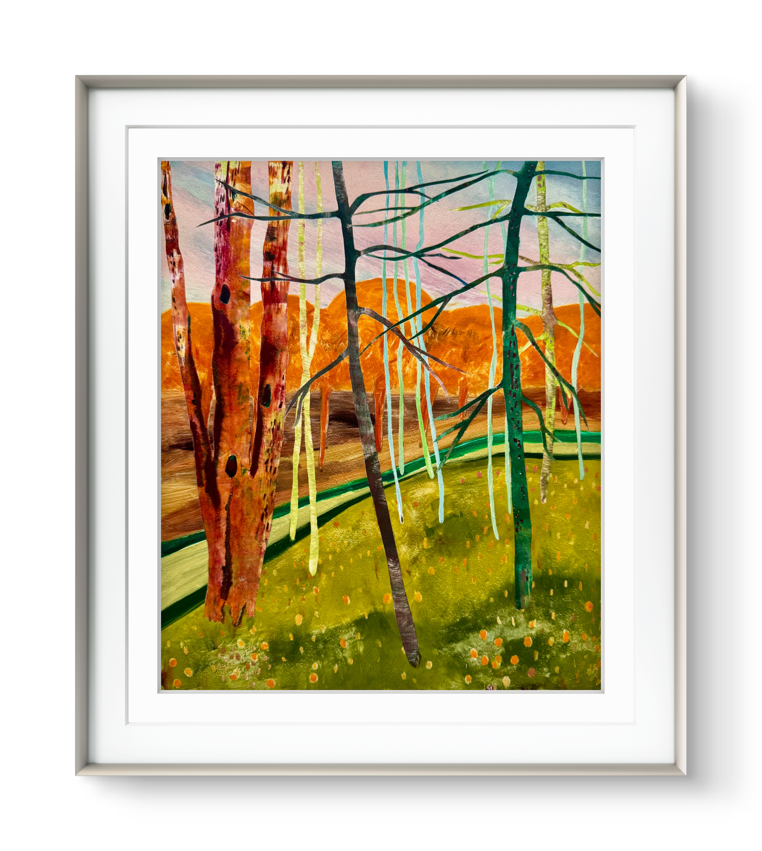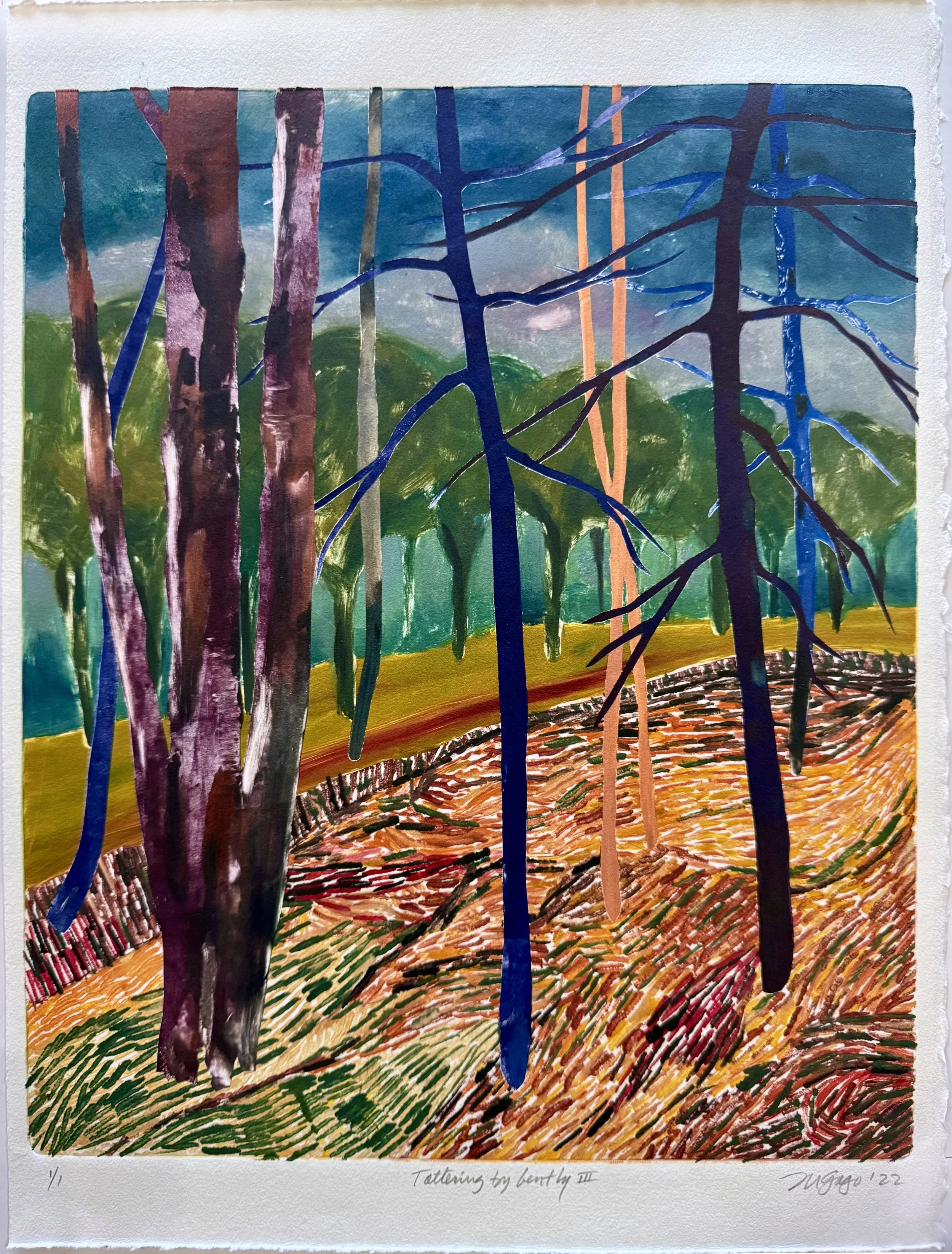 These one-of-a-kind prints are created by painting directly onto a smooth plate, then transferring the image onto paper, which results in a print that feels as immediate and expressive as a painting. With loose mark making and color fields, these landscapes are transformed into lyrical and lively microcosms of fleeting moments.