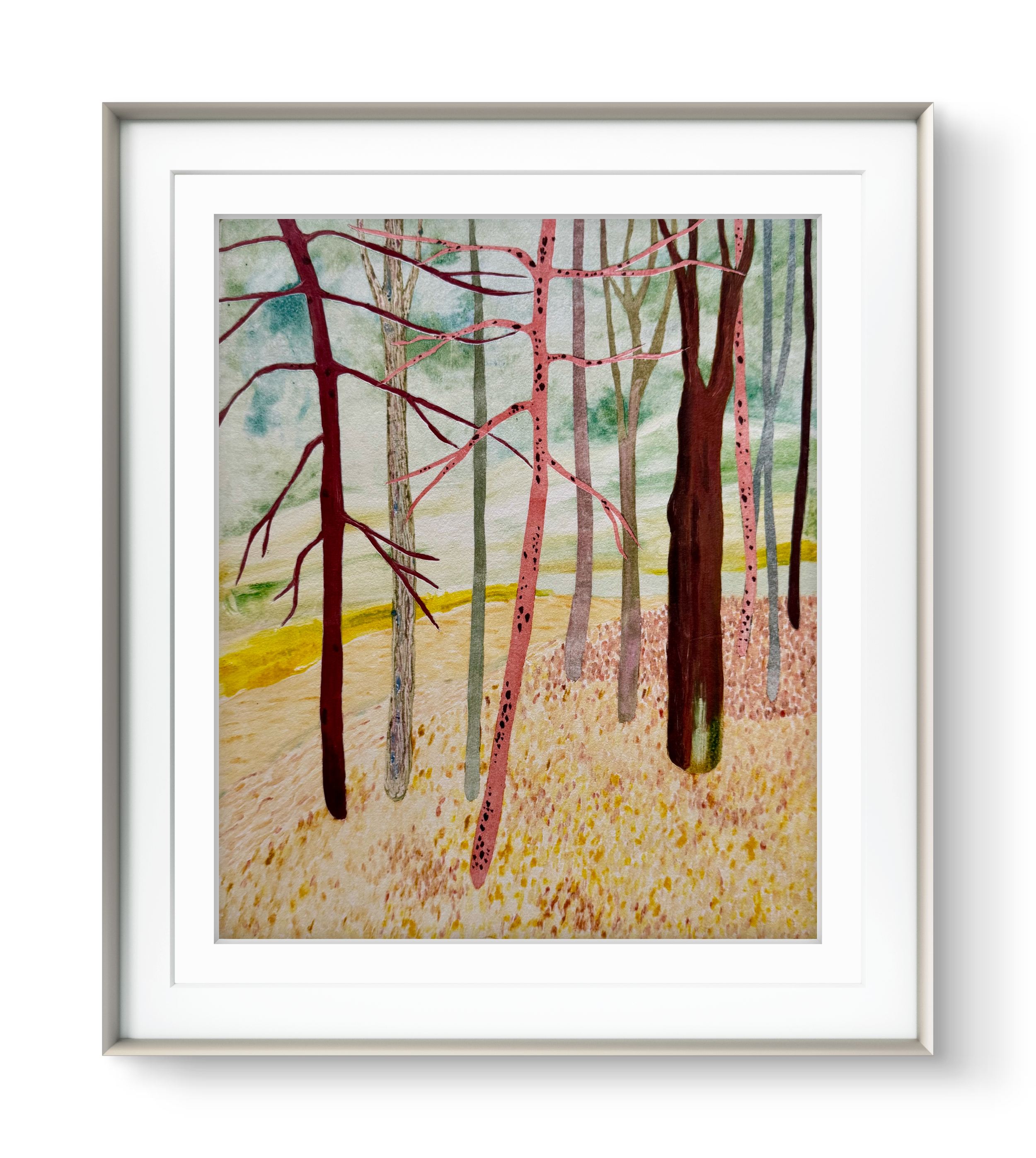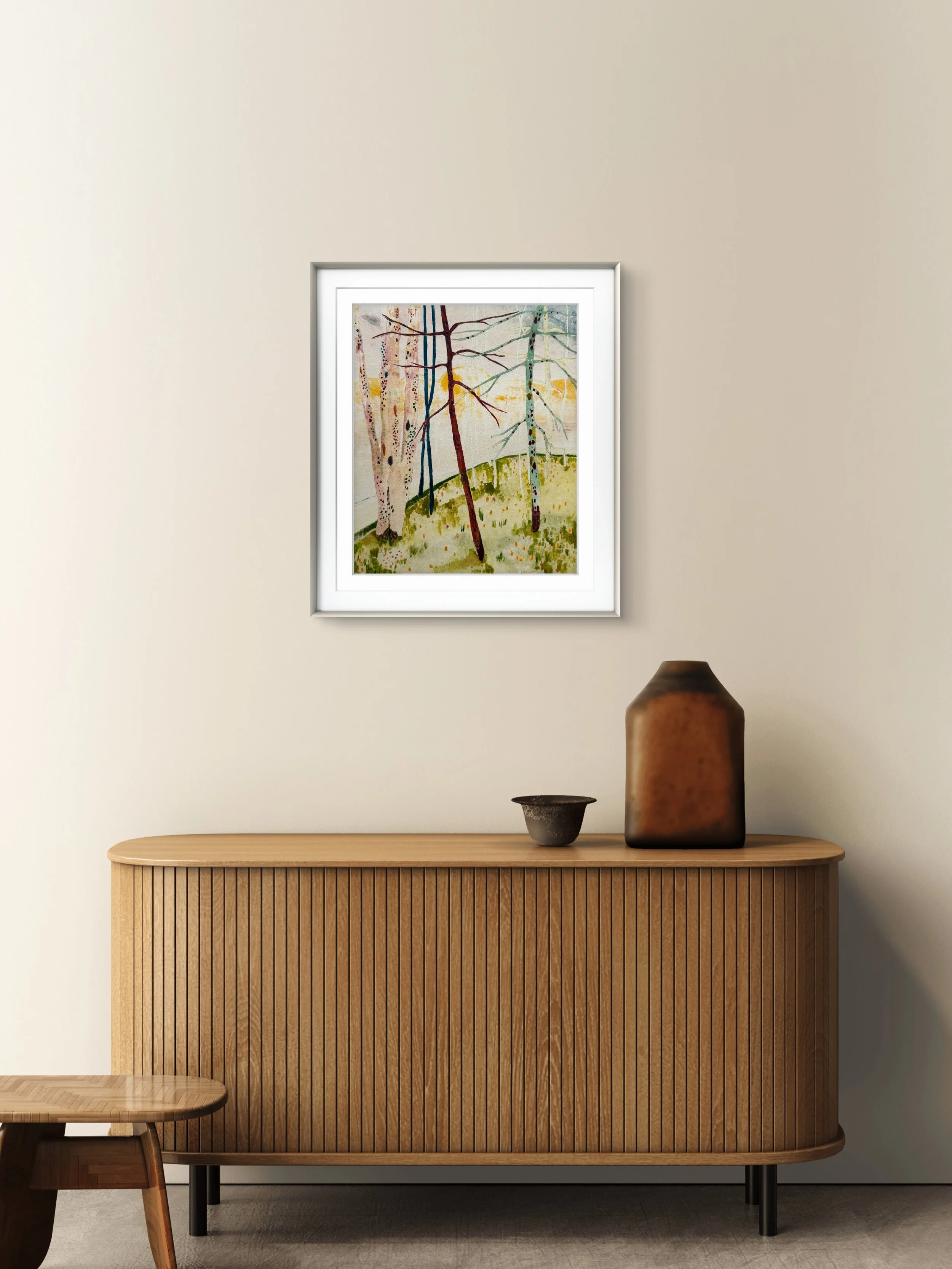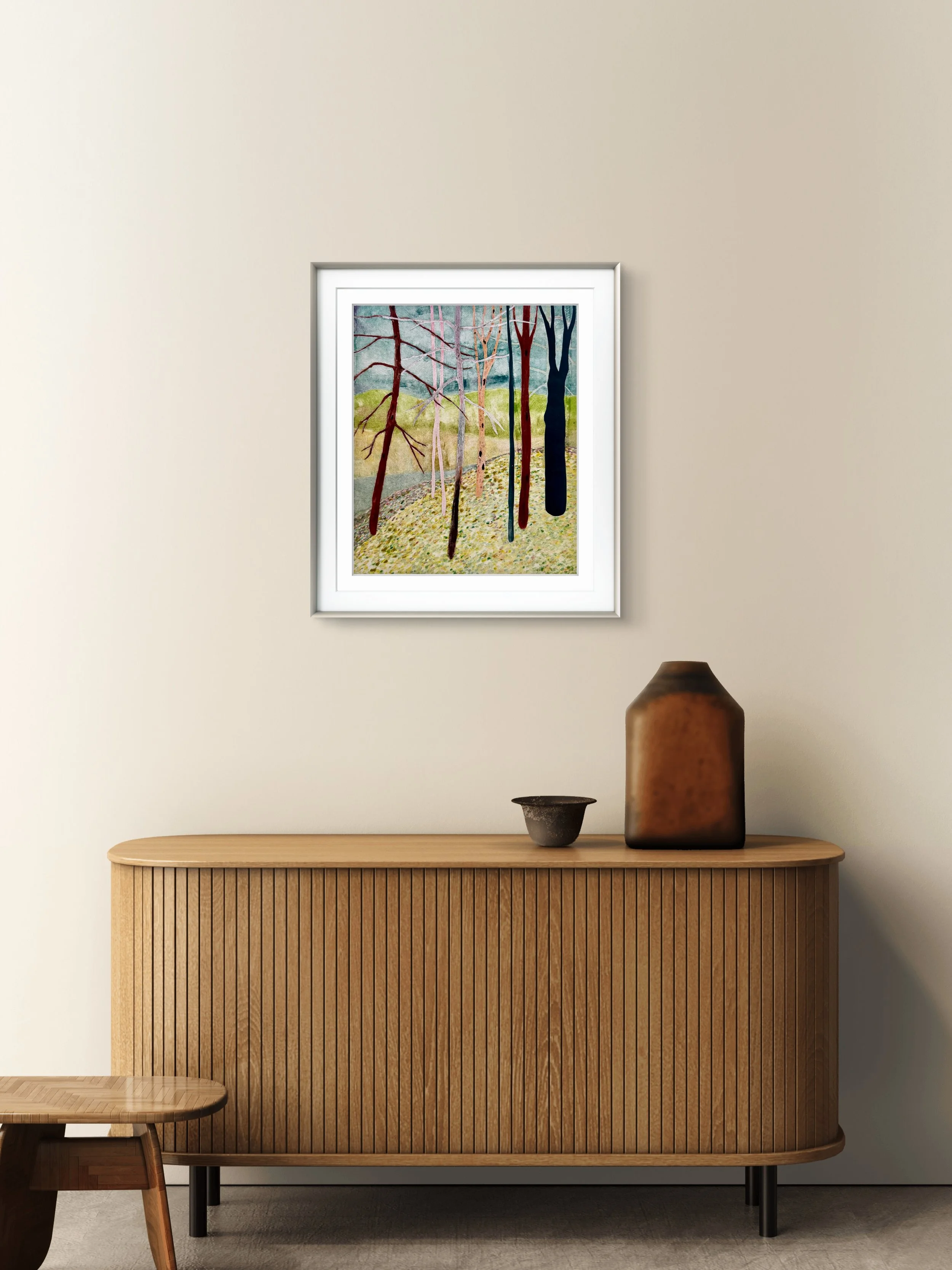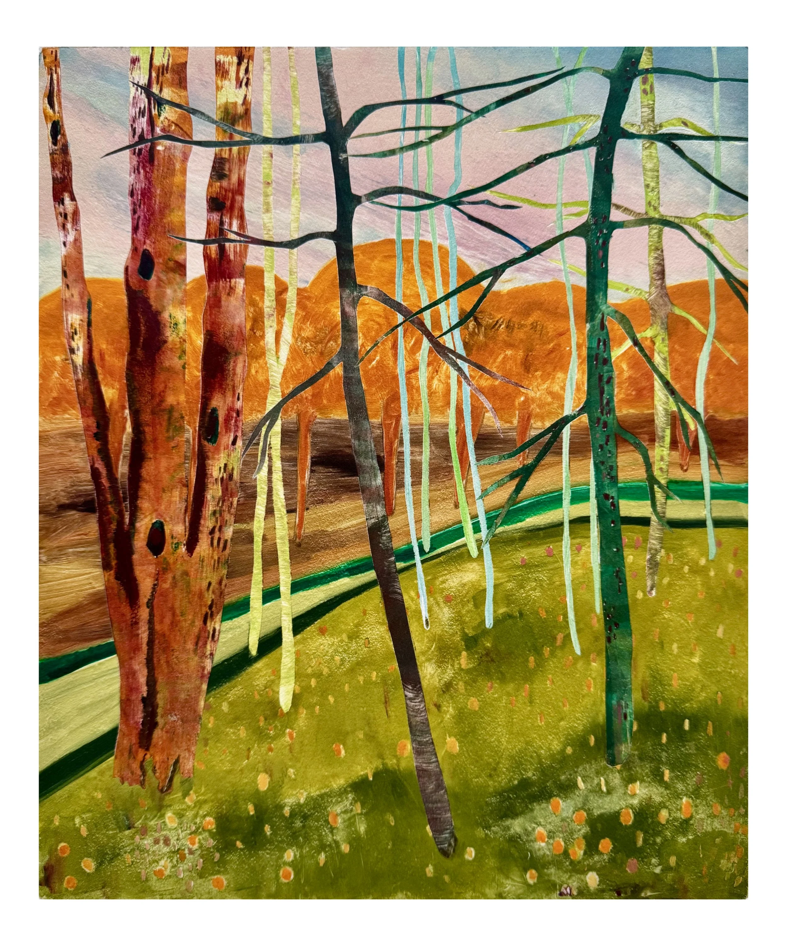 These one-of-a-kind prints are created by painting directly onto a smooth plate, then transferring the image onto paper, which results in a print that feels as immediate and expressive as a painting. With loose mark making and color fields, these landscapes are transformed into lyrical and lively microcosms of fleeting moments.