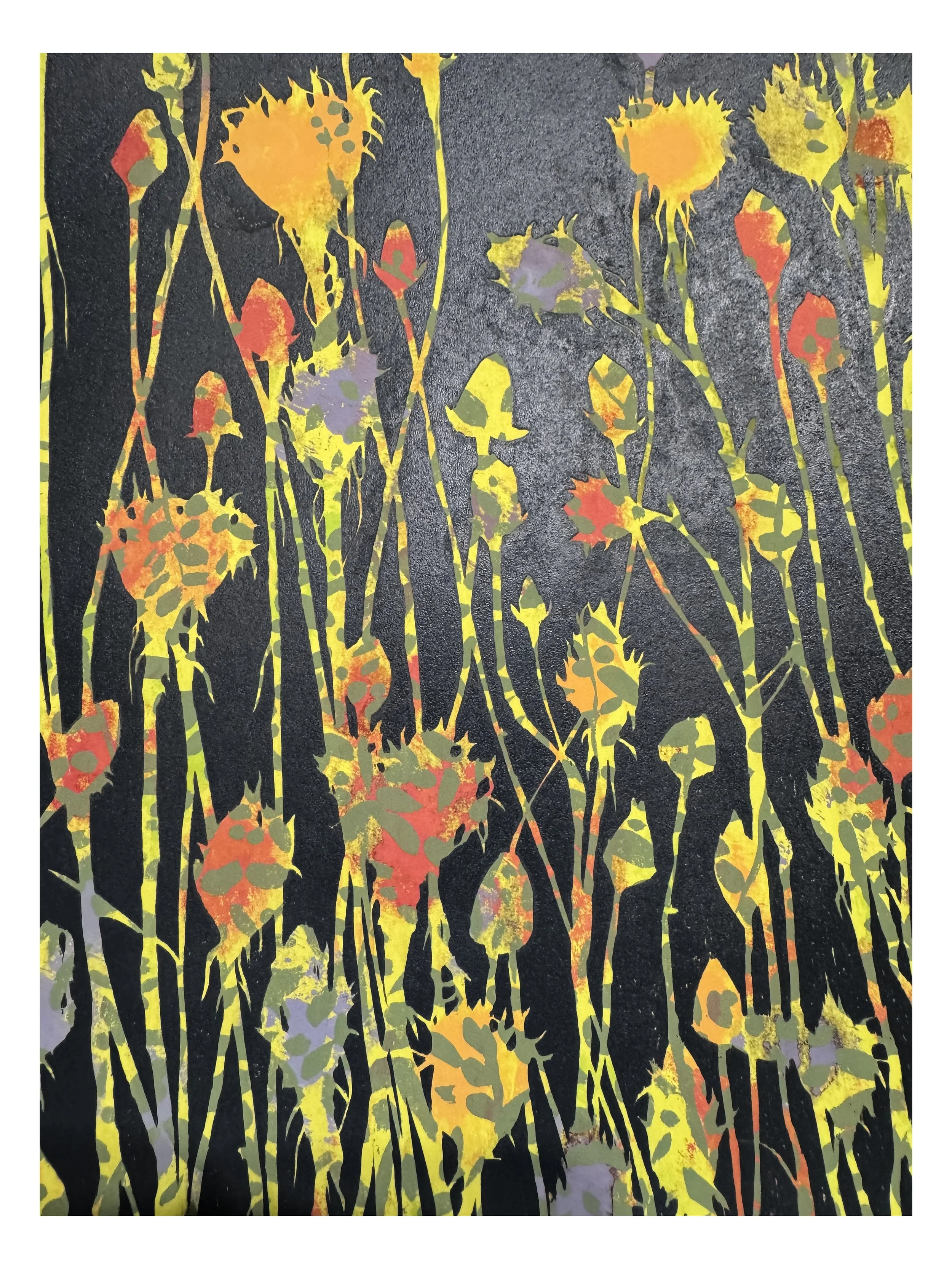 A range of one-of-a-kind prints depicting wild vegetation, executed with an integration of woodcut and silkscreen. These hand pulled prints utilize a painterly technique that makes each work unique.
