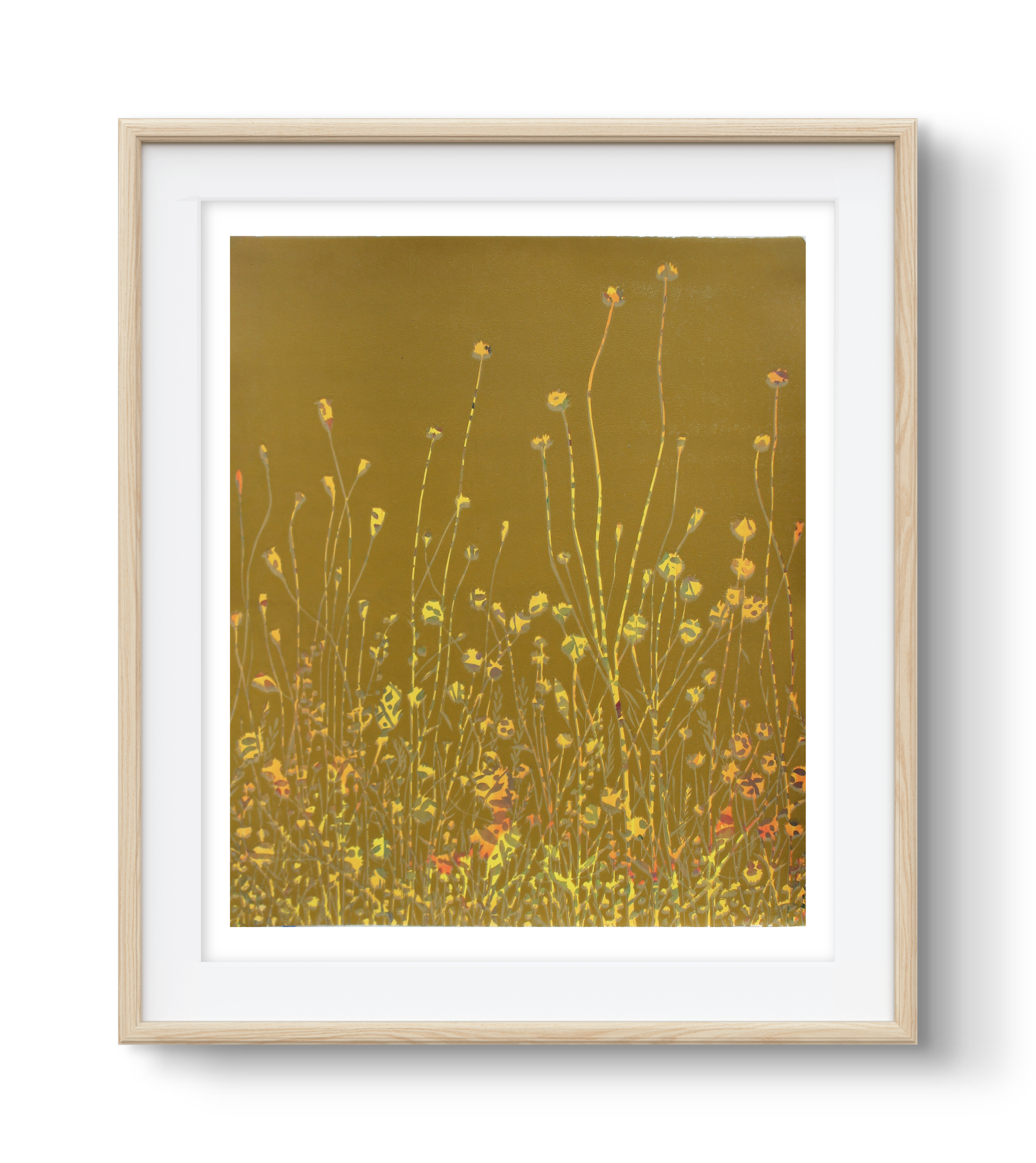 A combination of woodcut and silkscreen, this series explores mood and atmosphere in a layered and natural landscape. With a sense of stillness as well as movement, the work balances spontaneity with precision, capturing the fleeting beauty of a wild meadow.